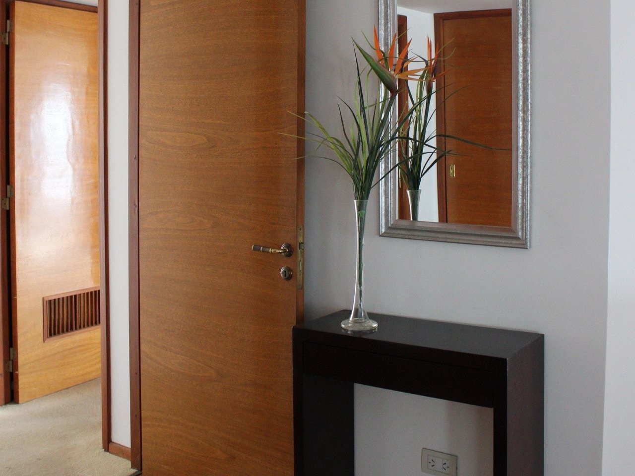 Doble ingreso. Acceso principal al estar comedor en pisos entarugados, con salida al balcón corrido al frente orientación este. Toilette de recepción. Ingreso secundario a la cocina comedor diario con dependencias (habitación y baño de servicio), lavadero independiente. Amplia suite con vista al río. Dormitorios con otro baño completo. Escritorio con ventanal al río.