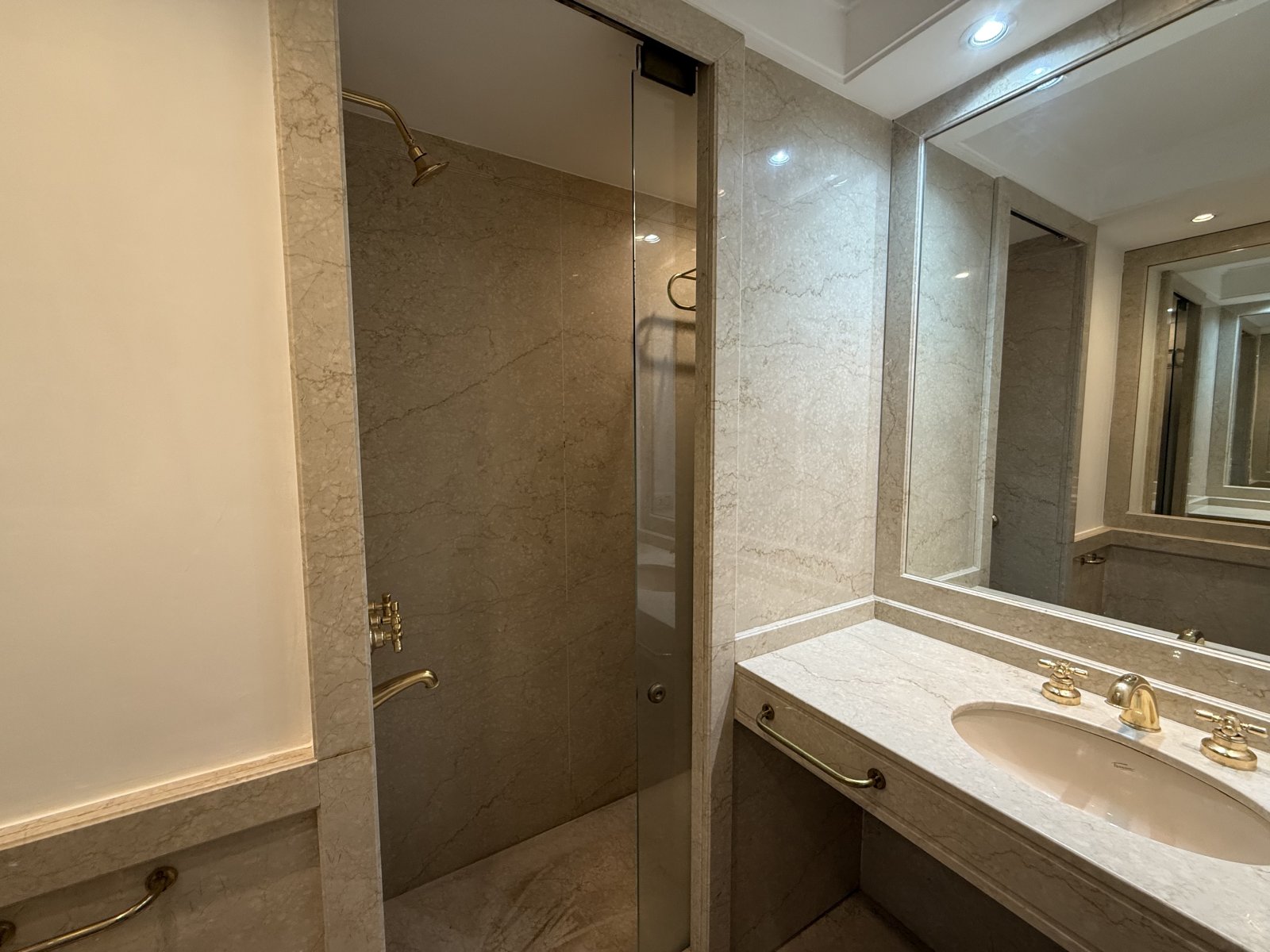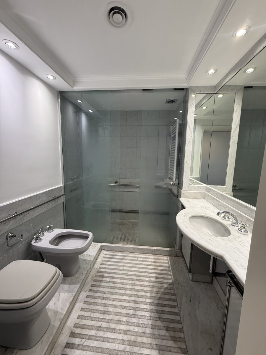 Terminaciones de primera categoría, con pisos de parquet de madera maciza, revestimientos y bachas de mármol en los baños, puertas y muebles en madera de calidad, y cielorrasos con molduras con artefactos de iluminación embutidos. Persianas eléctricas.