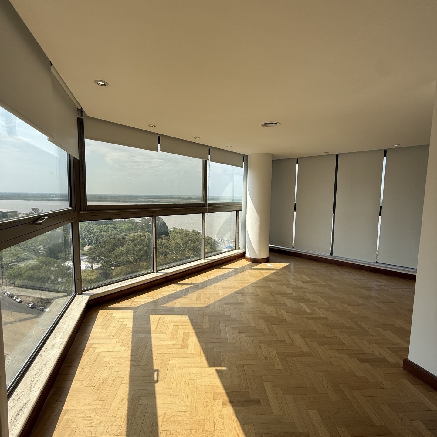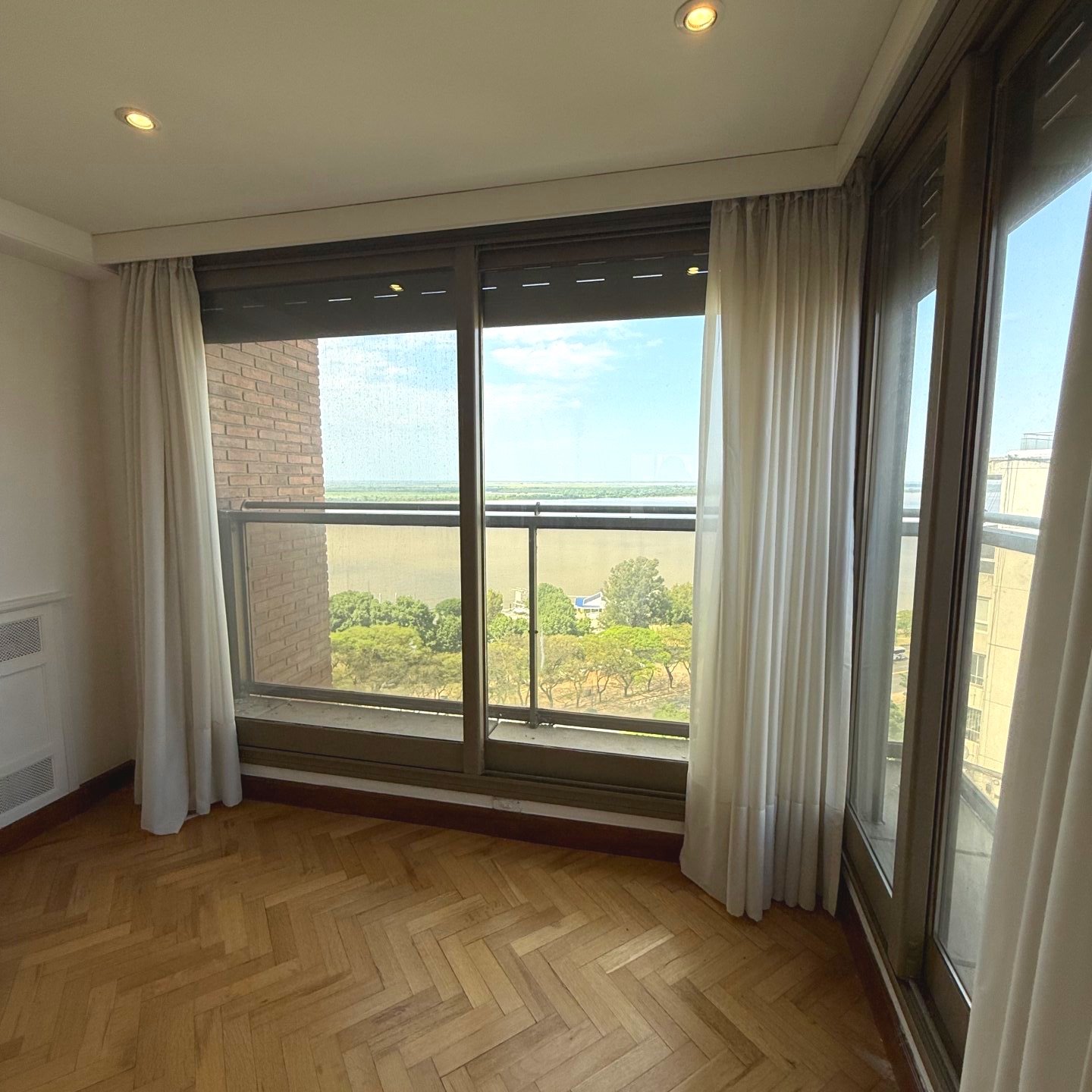 Gran living comedor, con balcón vista hacia el rio Paraná.