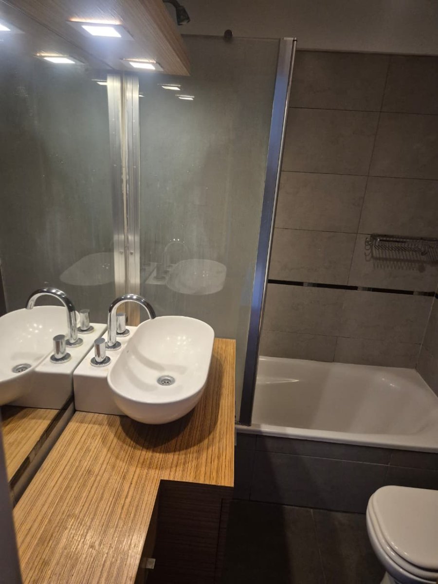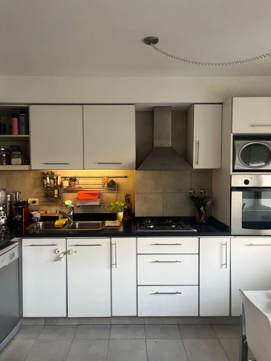 Posee ingreso al estar comedor (puerta blindada) con ventanales con salida al balcón corrido al frente, orientación este. Cocina separada, con mesada de mármol negro, conexión a lavarropas y lavavajillas. Caldera dual.